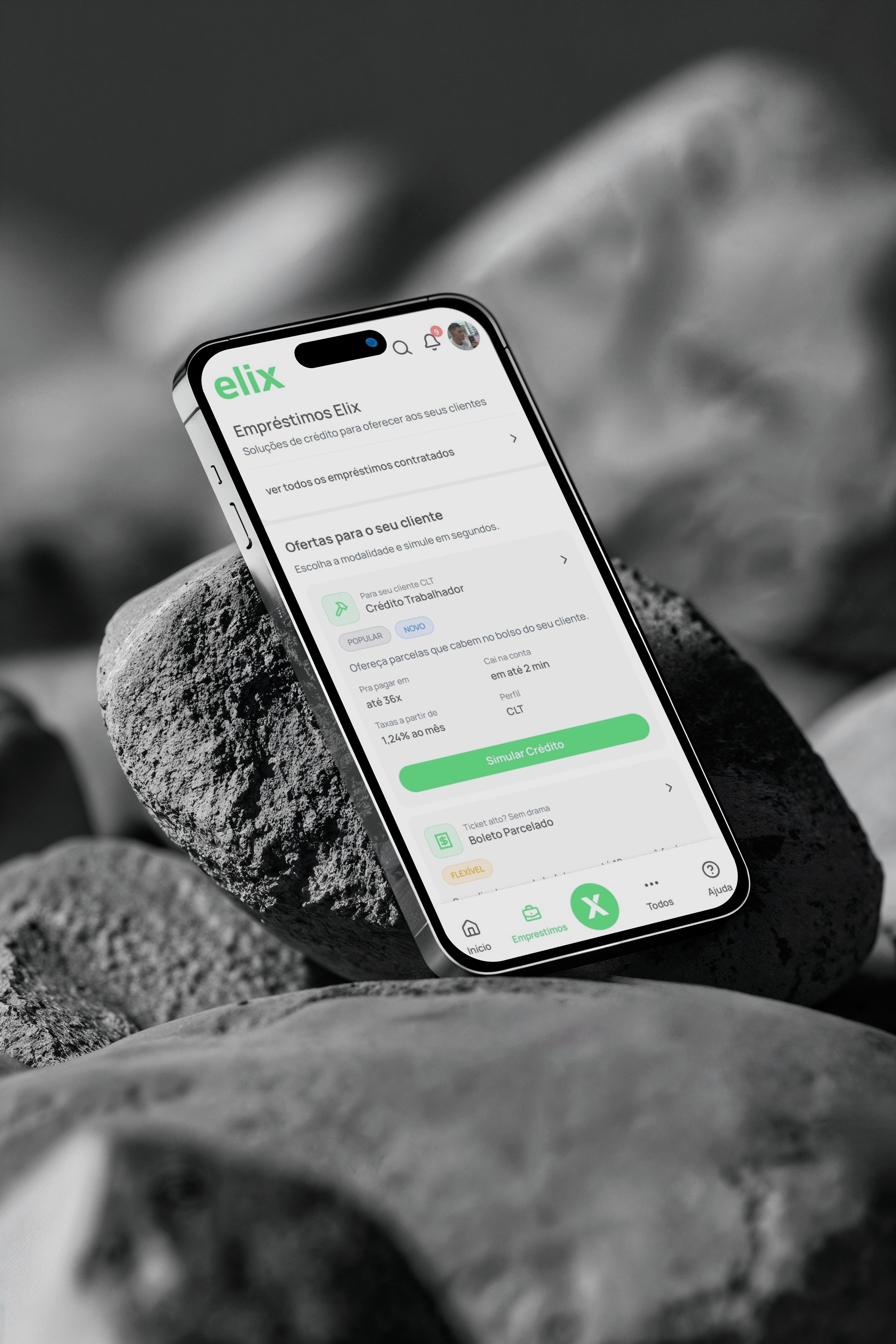 Elix was built as a credit and financial services platform that connects digital accounts, credit products, FGTS, insurance, consortia, installment boletos, and business solutions into one ecosystem. Our product and experience work gave shape to that universe, making it understandable for end users.